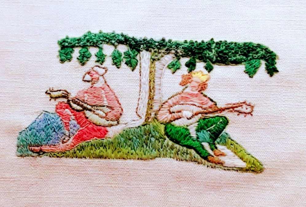 This piece shows the Troubadours whose love songs were first heard by Dermot in the court of Eleanor of Aquitaine.